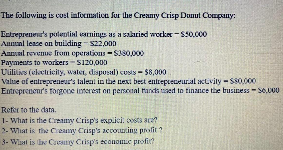 Solved The Following Is Cost Information For The Creamy Chegg Com